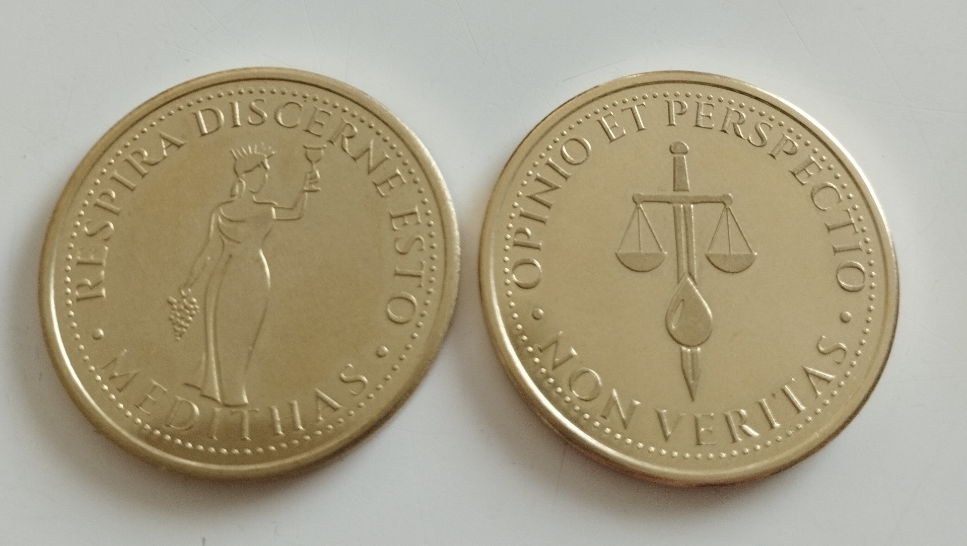 Filosofické, stoické motto o rozvaze, kritickém myšlení a hledání skutečné pravdy namísto impulzivních soudů.